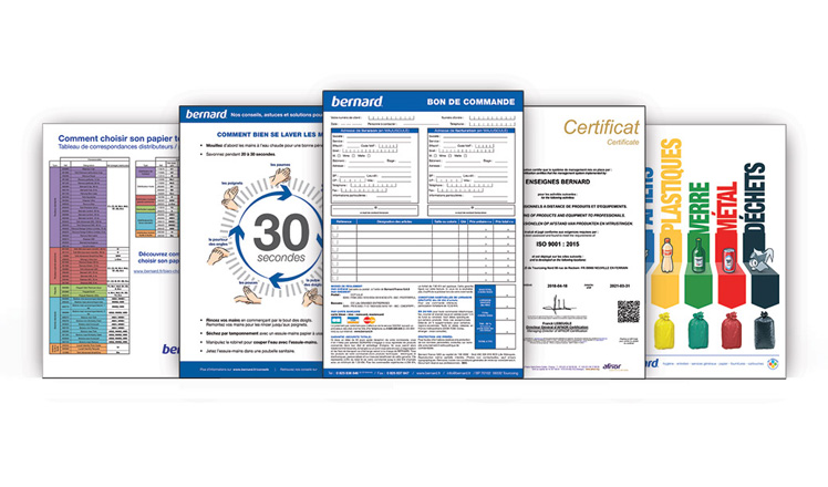 Soucieux de toujours vous apporter plus de facilité dans vos démarches en ligne, nous avons regroupé ici tous les documents utiles à vos commandes spécifiques ou vos relations avec Bernard. Nous avons également rassemblé l'ensemble des affiches gratuites dédiées à la propreté en entreprise. Une communication saine et efficace est à portée de main !
