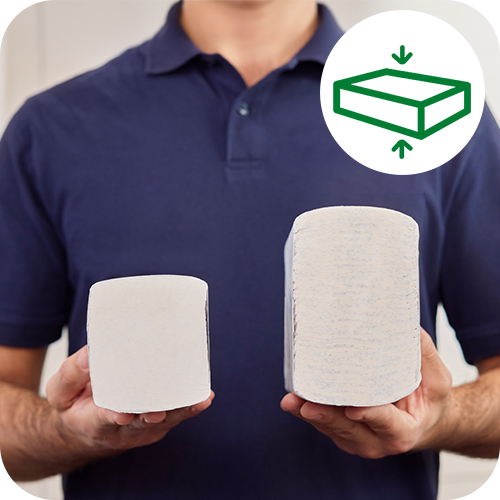 Optimisation et gain de temps : Servez deux fois plus d’utilisateurs entre les recharges et libérez de l’espace dans vos entrepôts avec des paquets compressés à 50 %.