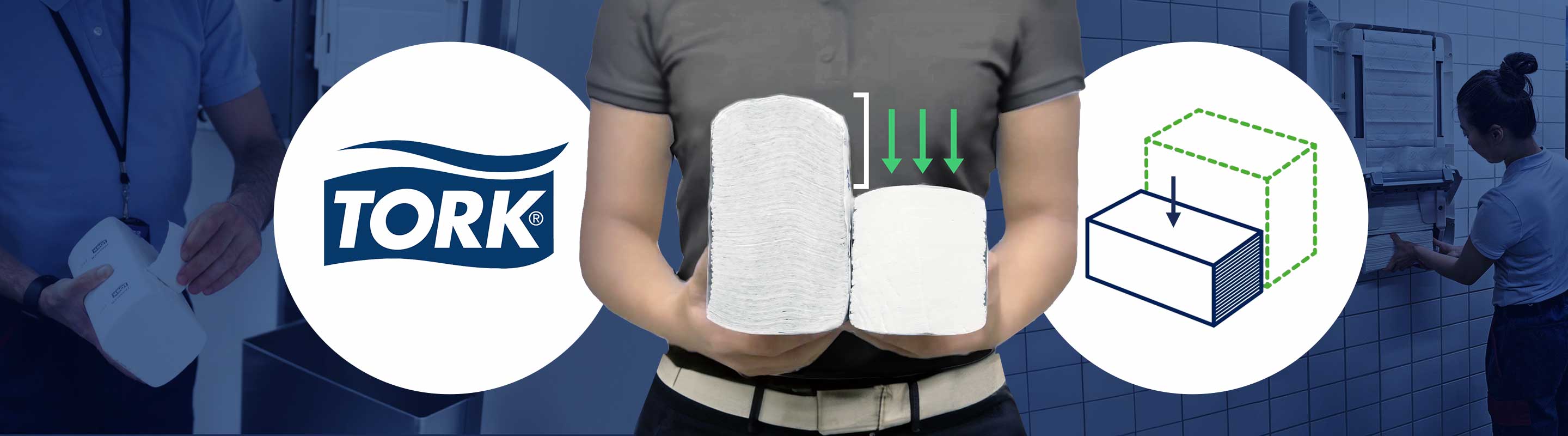 1 : Comparés aux essuie-mains pliés standard Tork équivalents, sur la base d’une utilisation de deux essuie-mains par personne