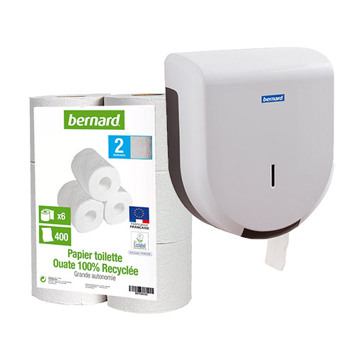 Om dit gamma hygiënepapier te vervolledigen, werden aan de catalogus Bernard producten handdoekdispensers en toiletpapier toegevoegd die hun ambities waarmaken: de sanitaire ruimtes van ondernemingen uitrusten met kwaliteitsmaterialen voor redelijke prijzen. Verschillende referenties voldoen aan de eisen van de gebruikers, waaronder dispensers voor toiletpapier en handdoekjes, geschikt voor een verdeling per vel, in rollen, klassieke rollen of voor centrale afrolling.