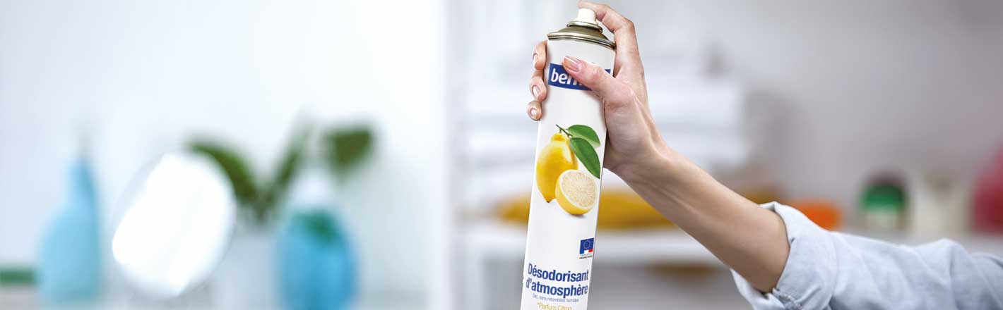 De punctuele verspreiding van luchtverfrissende en geurneutraliserende spuitbussen is bijzonder doeltreffend voor een onmiddellijke werking in de te behandelen ruimte. Ze geven een aangenaam gevoel van comfort en frisheid. Geschikt voor elk type lokaal (sanitaire ruimtes, restaurantzalen, hotels, kantoren, wachtzalen), deze luchtverfrissende sprays kunnen een ruimte ontgeuren tot 50 m3, wat voornamelijk het geval is met de luchtverfrissende spray Bernard.