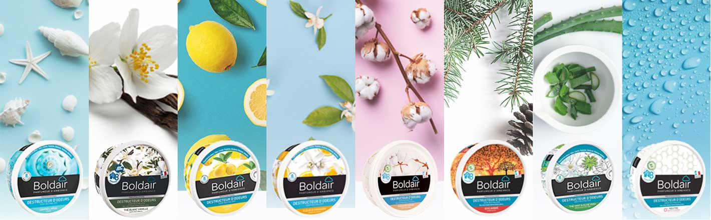 De geurneutraliserende gels zijn van het merk Boldair. Ze neutraliseren radicaal alle vieze geuren (tabak, keuken, vuilnisbakken, toiletten, ...). Hun technologie is gebaseerd op het vangen en vernietigen van moleculen die deze onaangename geuren veroorzaken. Verder parfumeren ze doeltreffend alle ruimtes in de buurt van waar u de gel plaatst. Bovendien is de werking van de gel permanent gedurende 8 weken. Deze vaste gel wordt aangeboden in potvorm met een diffusierooster, dat werkt door de verdamping van de natuurlijke actieve stoffen.