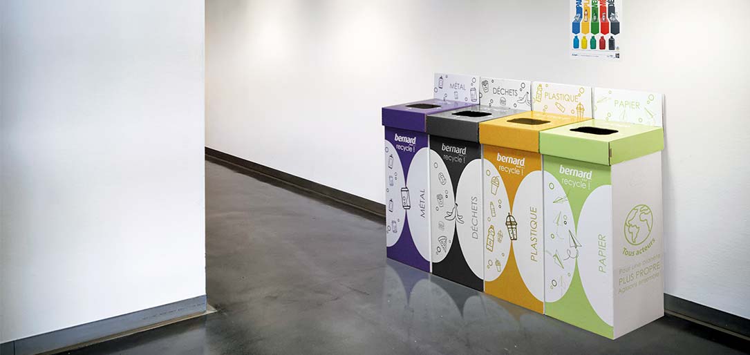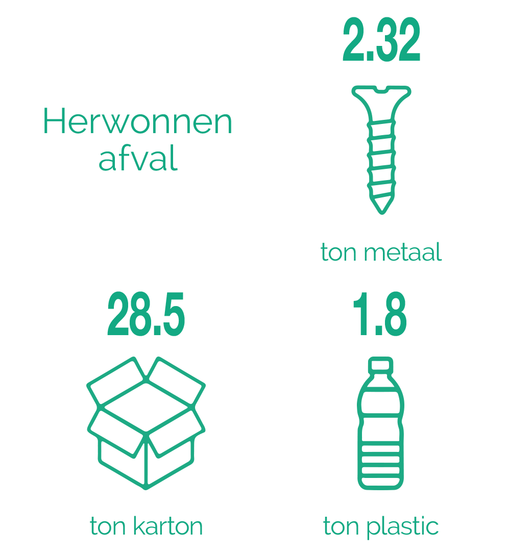 Alle individuele vuilnisbakken zijn omgeruild voor recyclagebakken. Dit maakt het sorteren nog efficiënter en stimuleert onze werknemers om zich meer te bewegen op de werkplek.